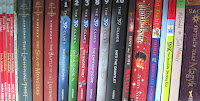 Next came the Young Adult section: Twilight Saga, Vampire Diaries, Mortal Instruments, Eragon, Leviathan (plus many others, I kind of got hooked here). Finally I came upon the Graphic Novel section. I knew of the popularity of GNs, especially for boys and since I am the mother of one. I looked at a few of them too: Bone, Amulet. ![]() |