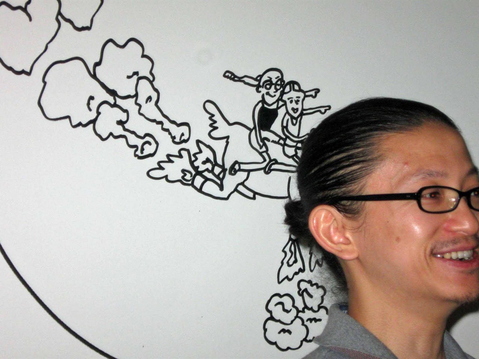 I wish I could have stayed in the exhibit a little longer to really take things in but as always, children have short attention spans. Hopefully I can pay another visit before it wraps up in October. Photographs were not allowed inside due to the many light sensitive artifacts such as scrolls and silks, though we were permitted to take pictures of renowned Japanese graffiti artist Nobumasa Takahashi, who was in the process of creating a huge graffiti mural on the wall outside the exhibit. He was just beginning his work when we saw him; it was neat to watch. He made it look effortless.